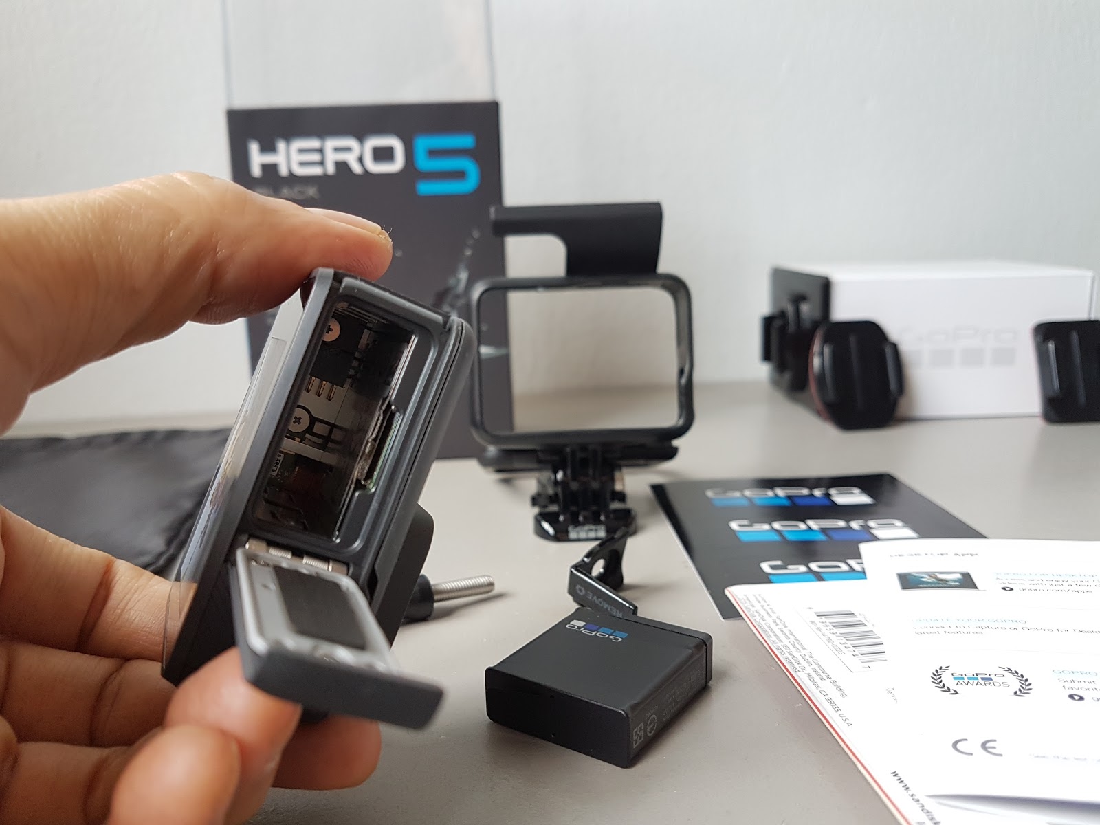 Everything about GoPro HERO5 Black sports action camera is so compact, even the battery and USB port. Cool!